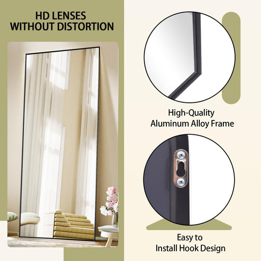 Full Length Mirror, Standing Hanging or Leaning Against Wall Floor Mirrors Body Dressing Wall-Mounted for Living Room, Bedroom with Aluminum Alloy Thin Frame