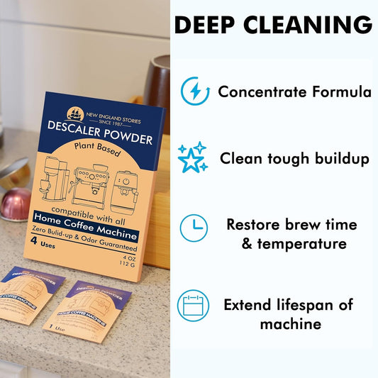 Descaling Powder (4 Uses) – Removes Scale for Coffee & Espresso Machines, Compatible with Keurig, Breville, Nespresso, Delonghi, Ninja