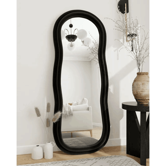 Wavy-A Irregular Mirror Full Length, Full Body Freely Standing Mirror for Bedroom, Living Room, Hanging or Against The Wall, Black