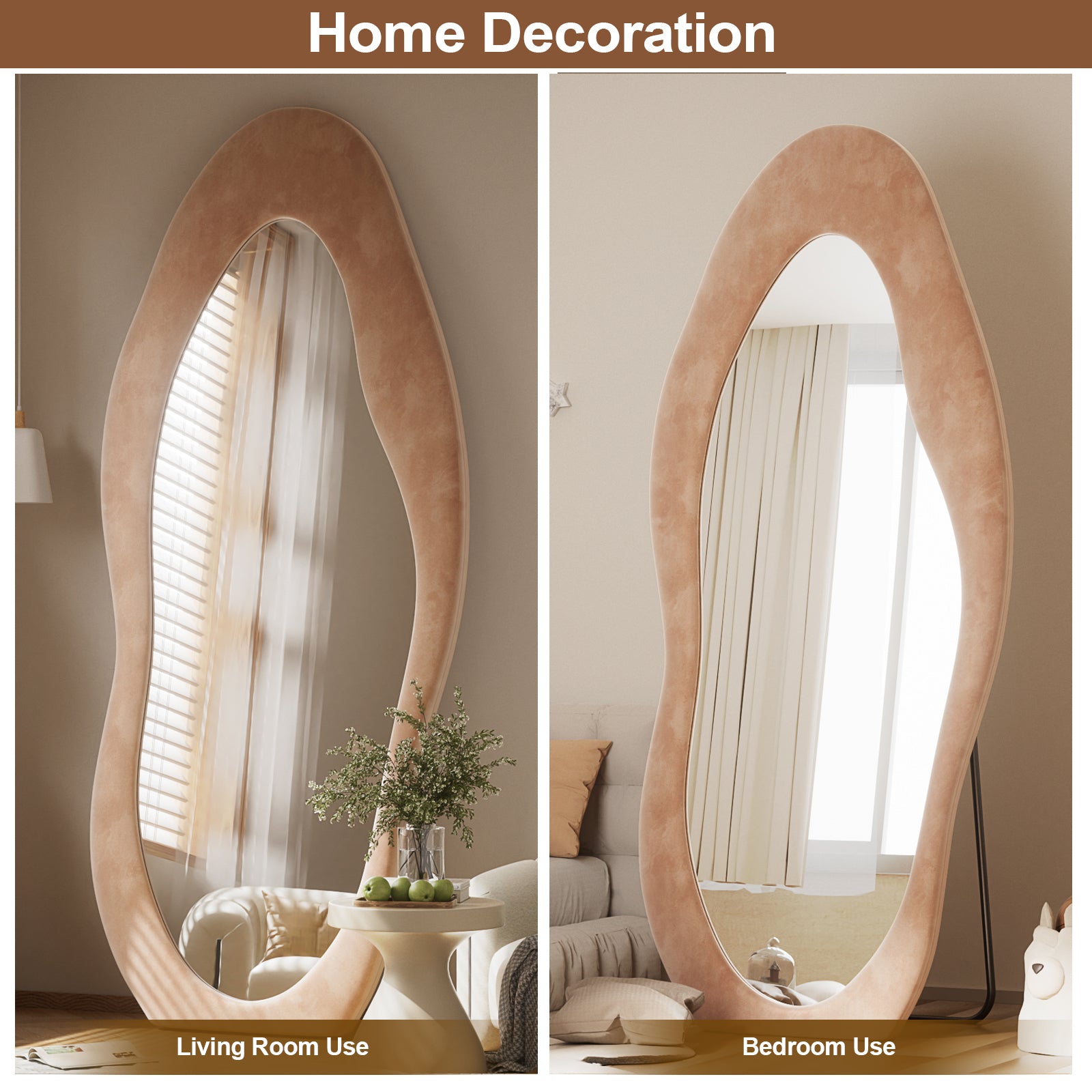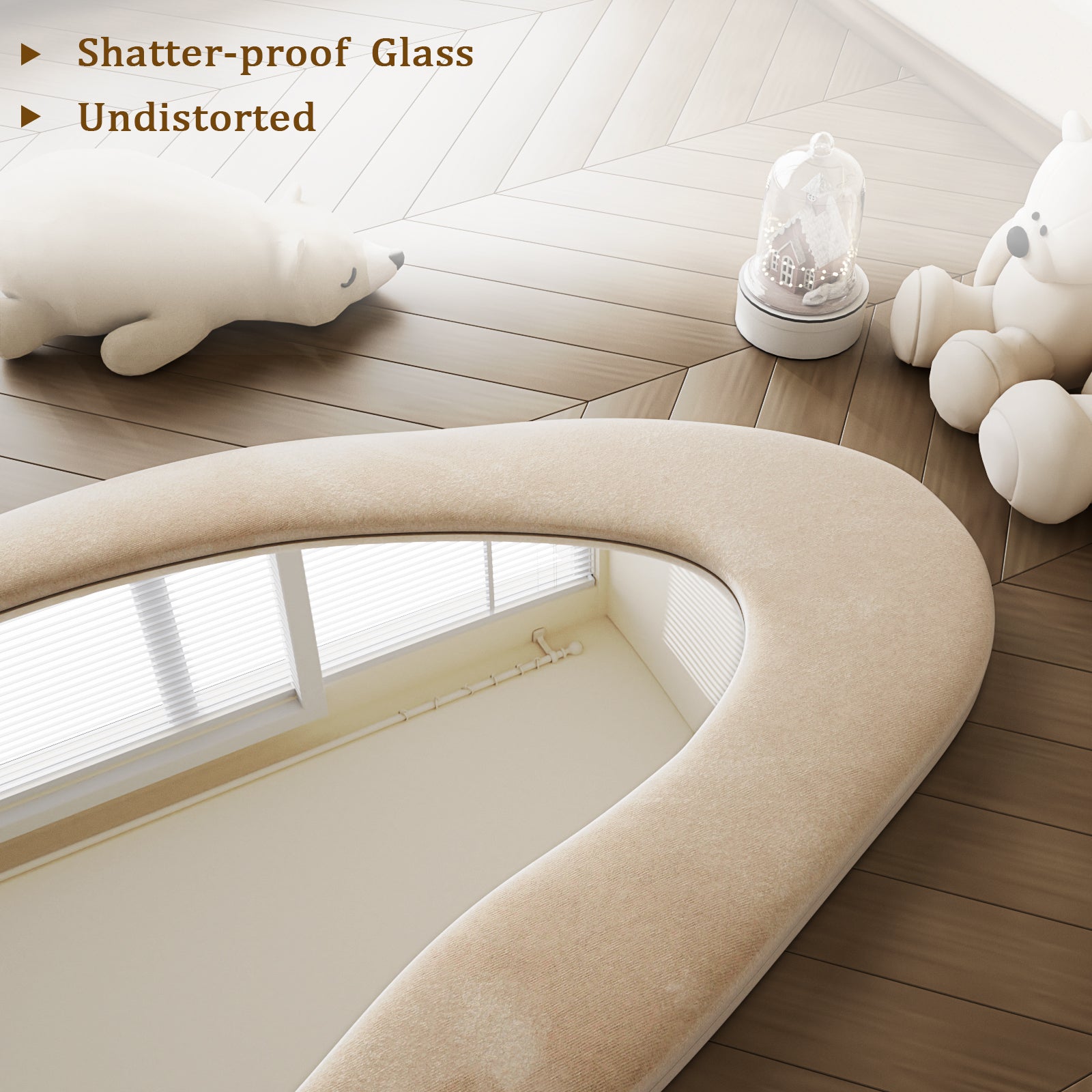 - Flannel Frame: Wrapped in plush, thick velvet fabric, the mirror’s flannel frame ensures a soft touch and minimizes collision risks, making it a stylish and safe choice for modern interiors.