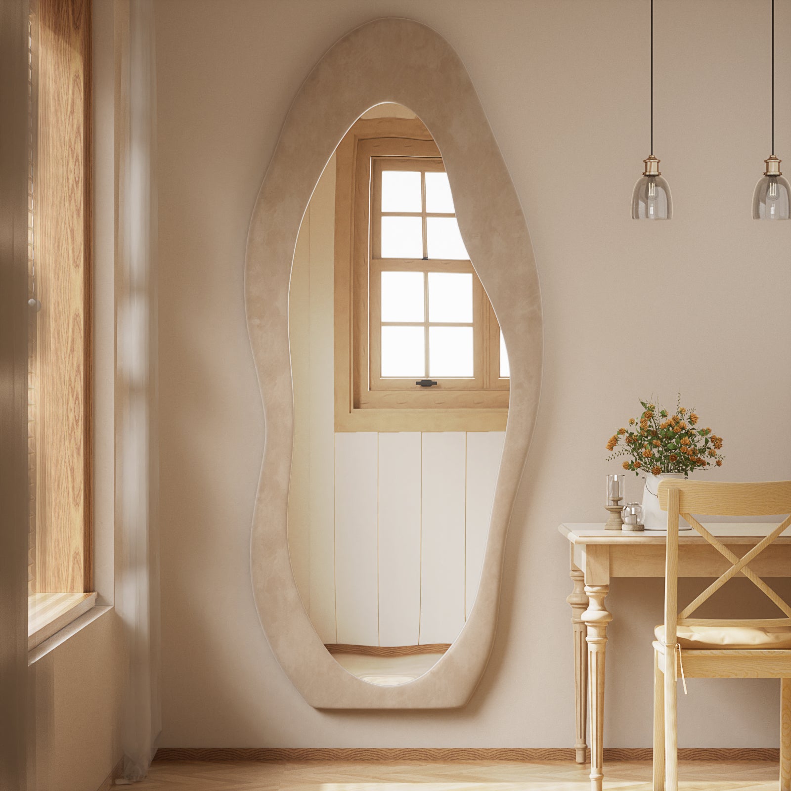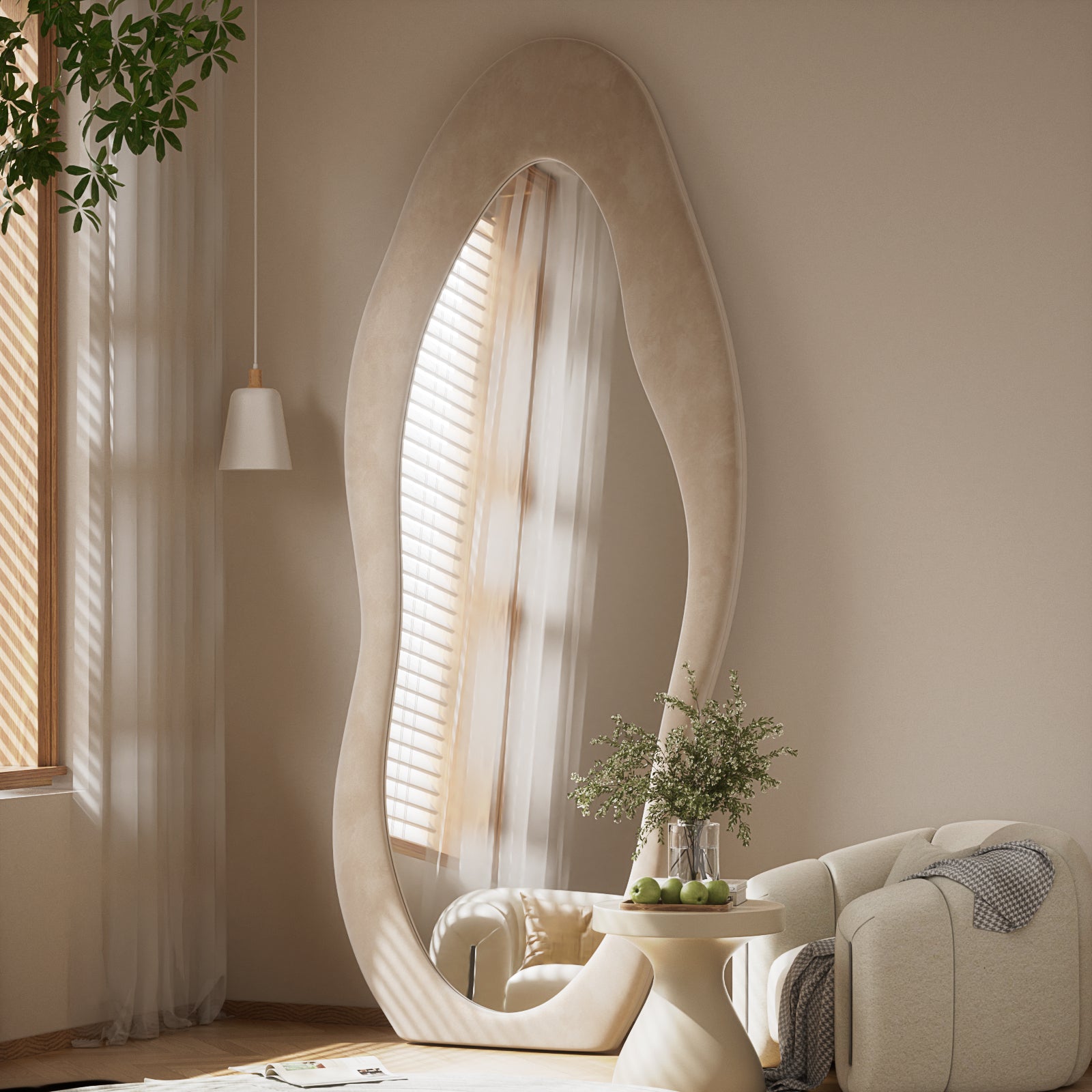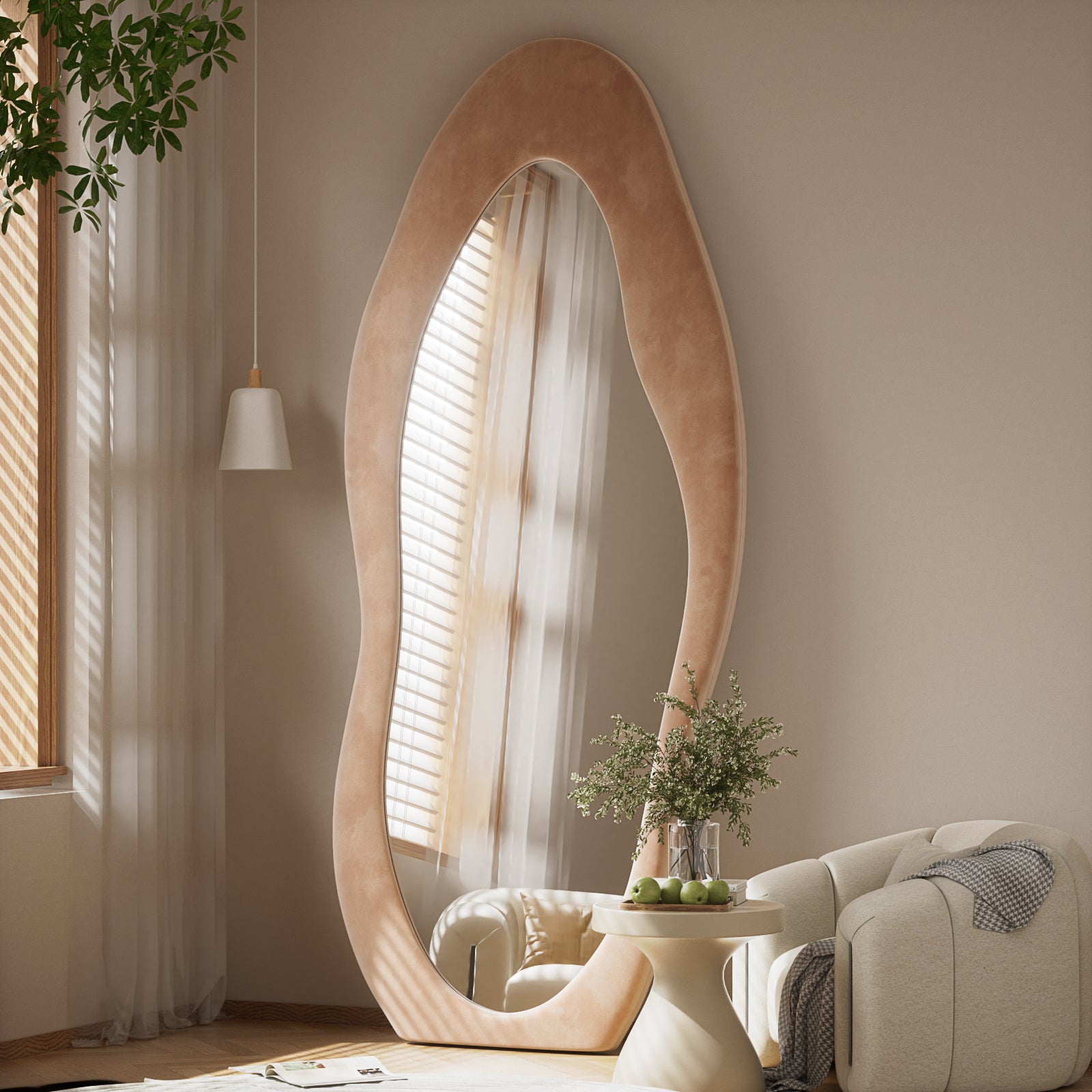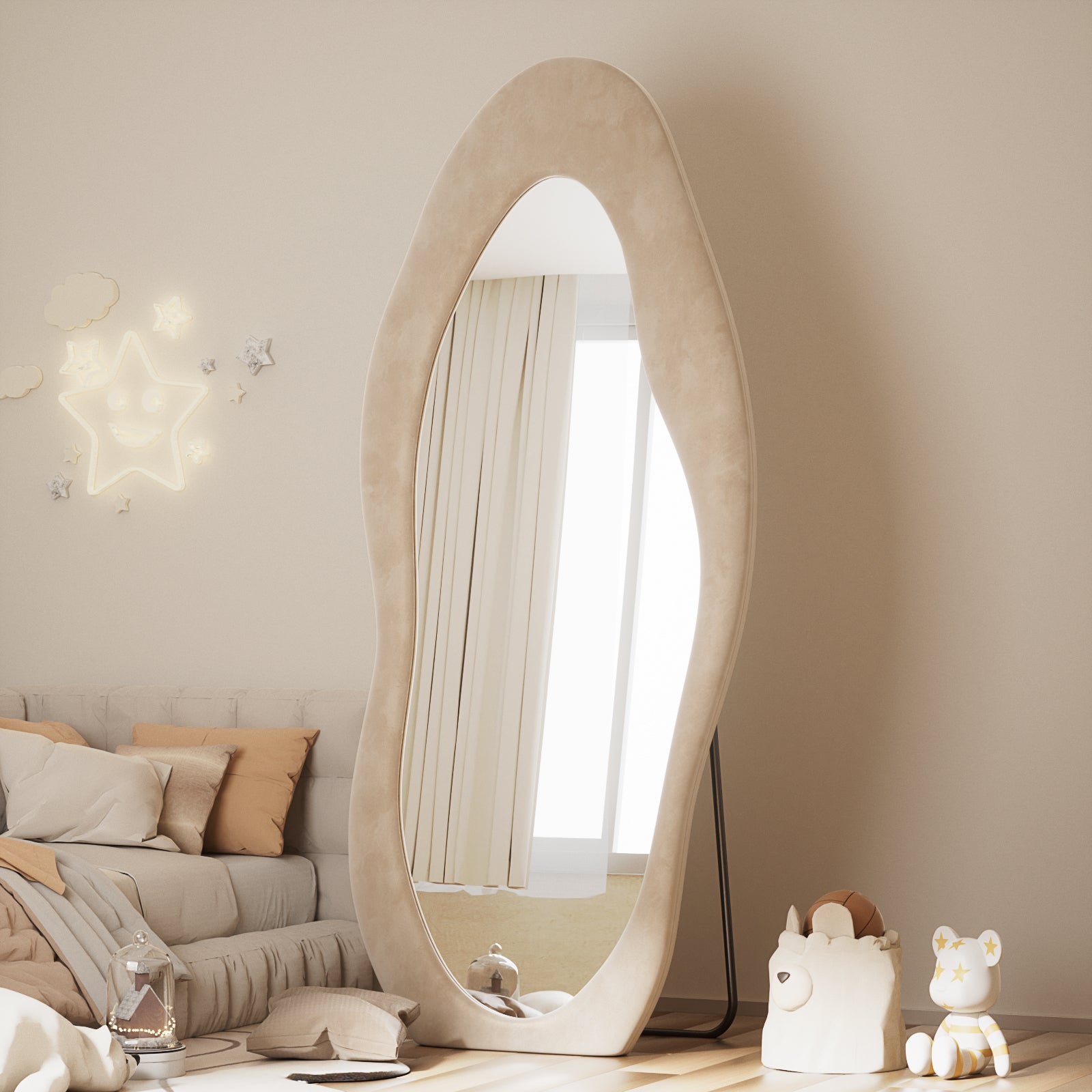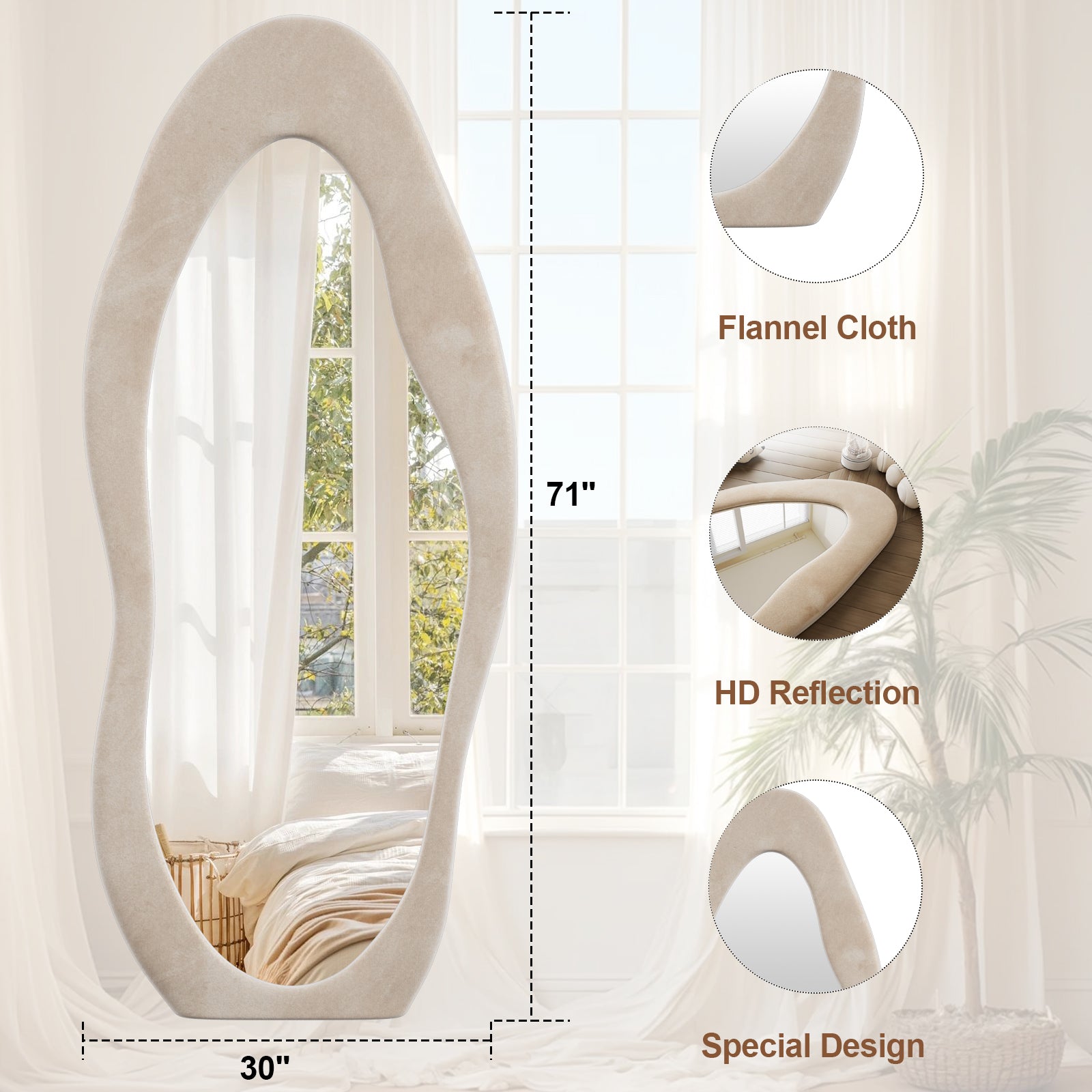 Anyrose 71"x30" Full Length Mirror Irregular Cloud Floor Mirror With Flannel Frame