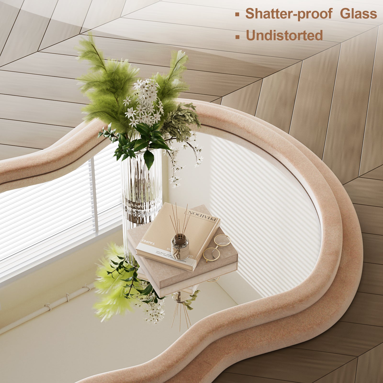- TIMELESS DESIGN: This modern mirror is an excellent addition to your room, which features a wavy shape that captivates attention and enhances its beauty.