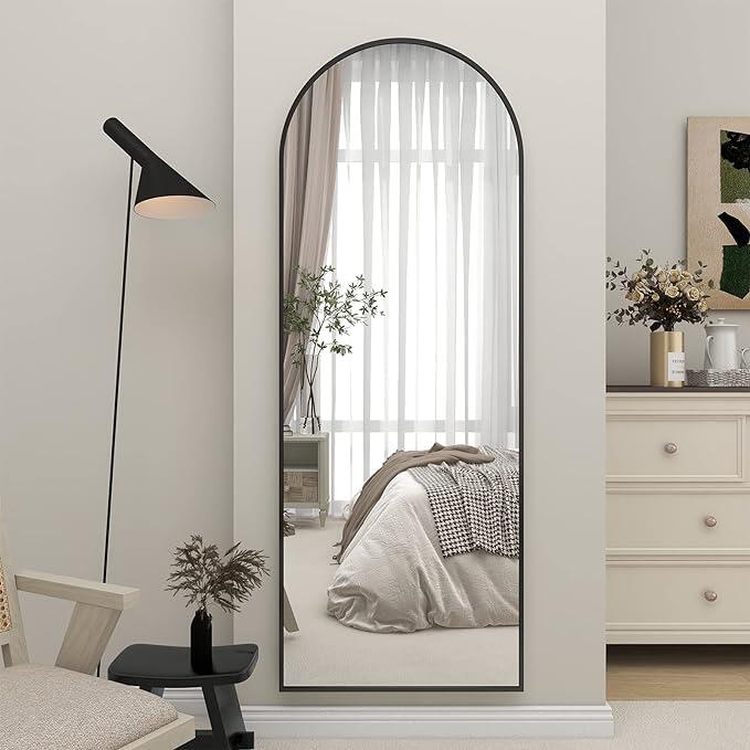 Arch Floor Mirror, Full Length Mirror Wall Mirror Hanging or Leaning Arched-Top Full Body Mirror with Stand for Bedroom, Dressing Room, Black