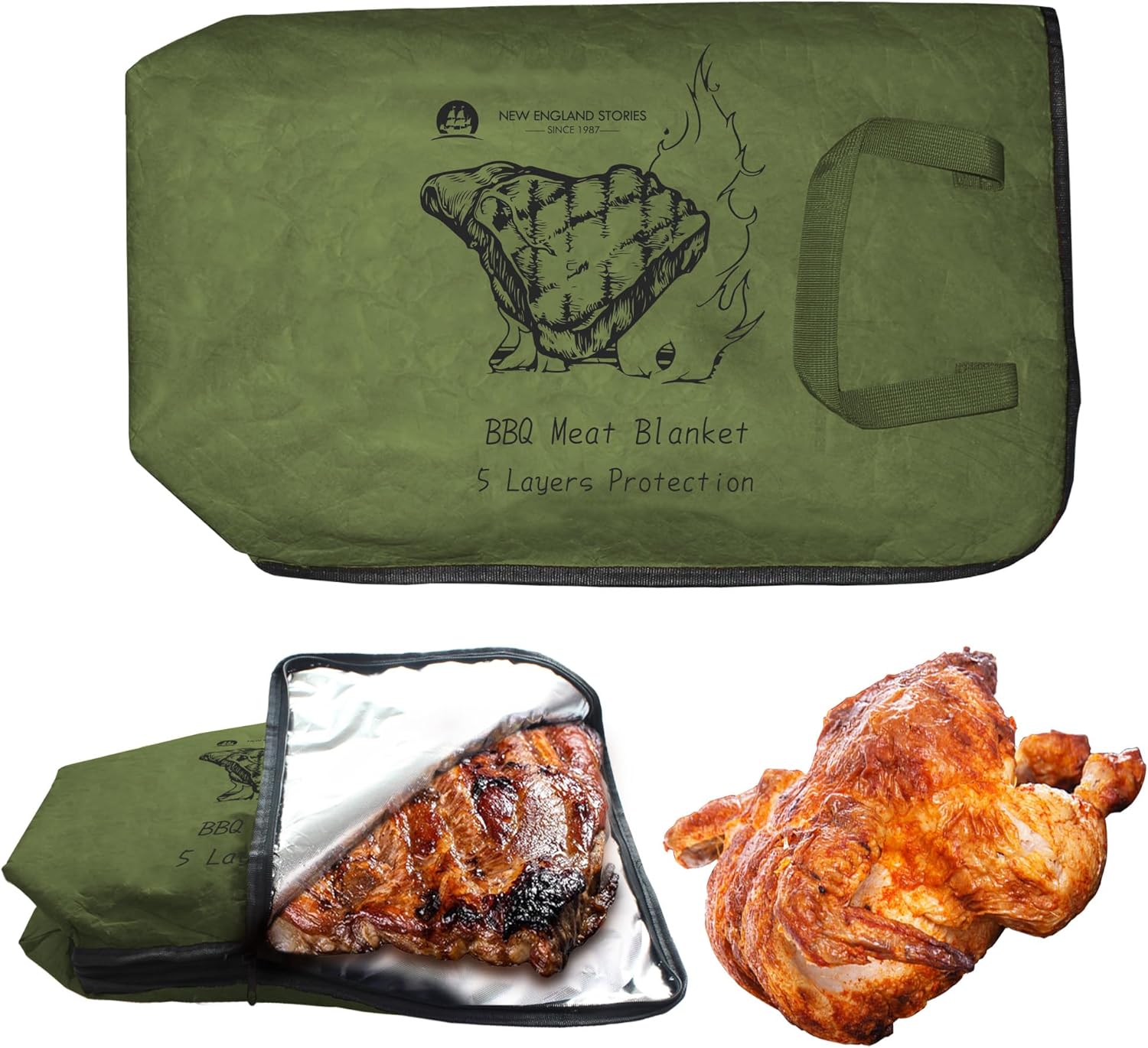 - 【Five-Layer Insulation Design for Superior Heat Retention】Made with five layers of high-efficiency insulation material and high-performance aluminum foil, effectively reducing heat loss. Compared to other insulation tools, it provides longer-lasting heat retention while staying lightweight, ensuring your meat stays tender and juicy, making it perfect as a BBQ blanket for resting meat.