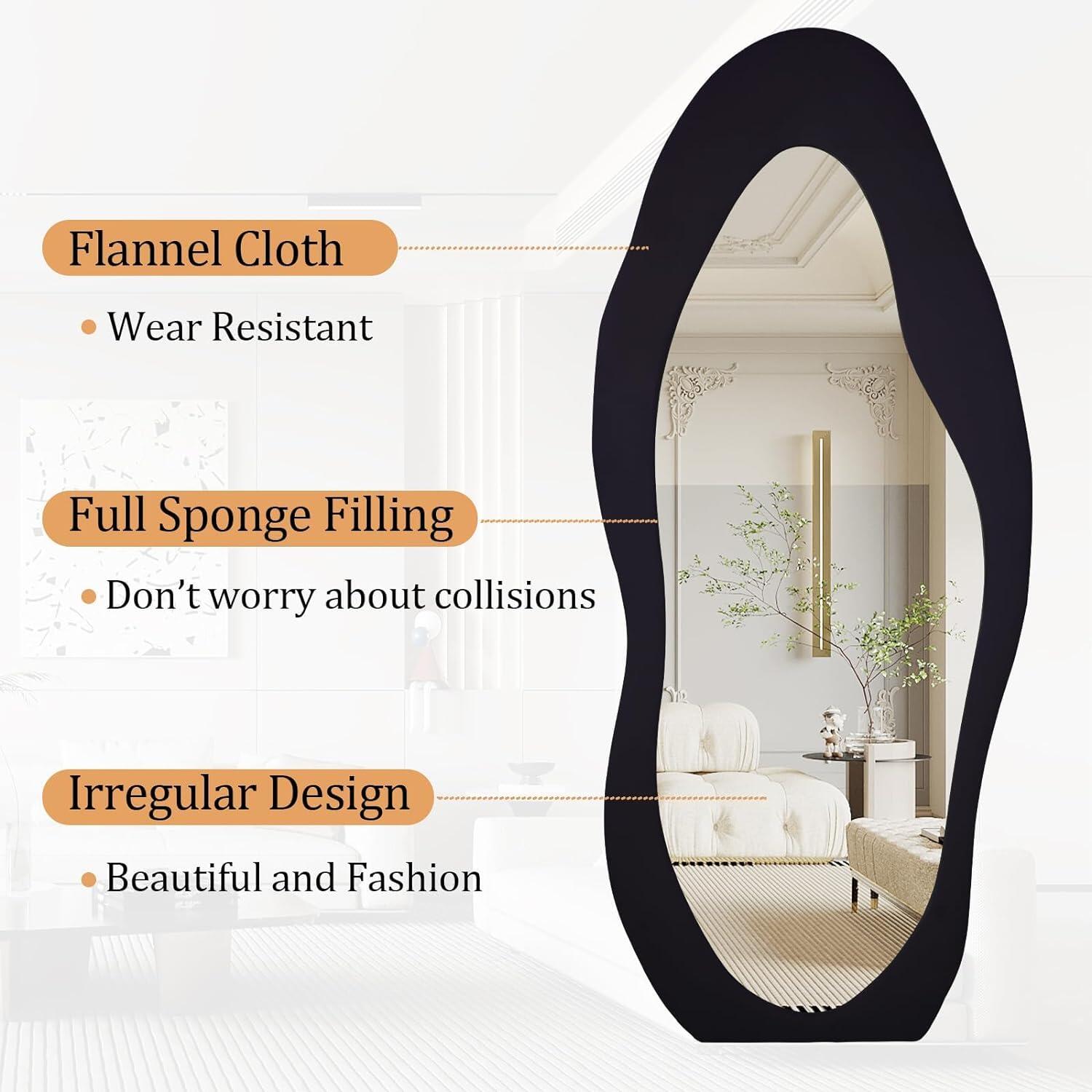 Oversized Flannel Cloud Floor Mirror with Stand, Full Body Freely Standing Mirror for Bedroom, Living Room, Hanging or Against The Wall, Black