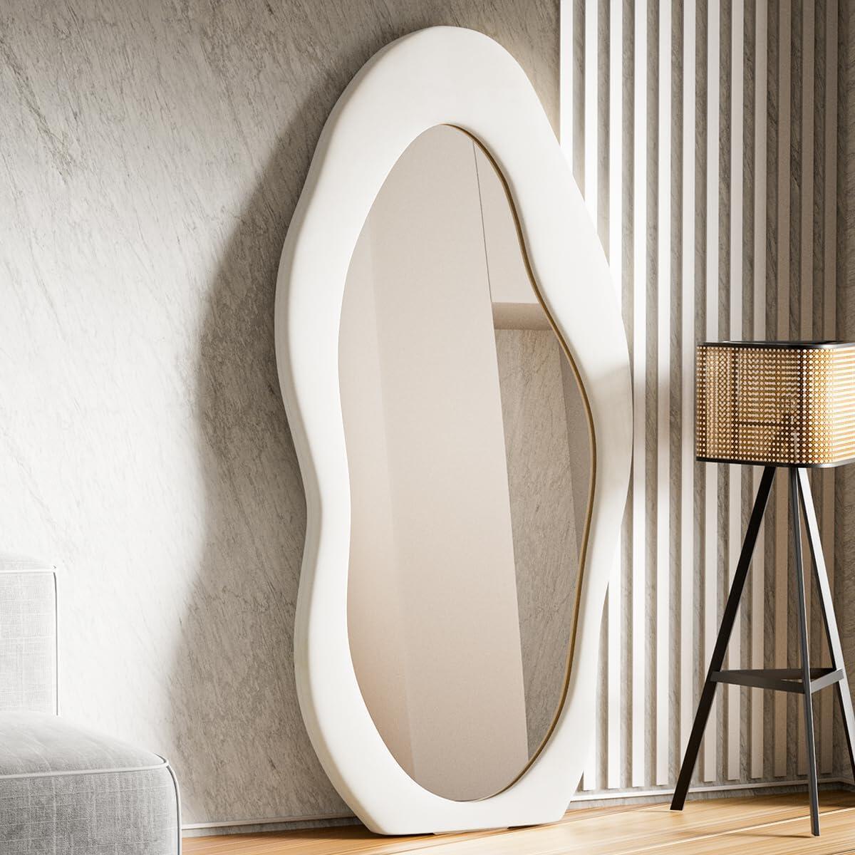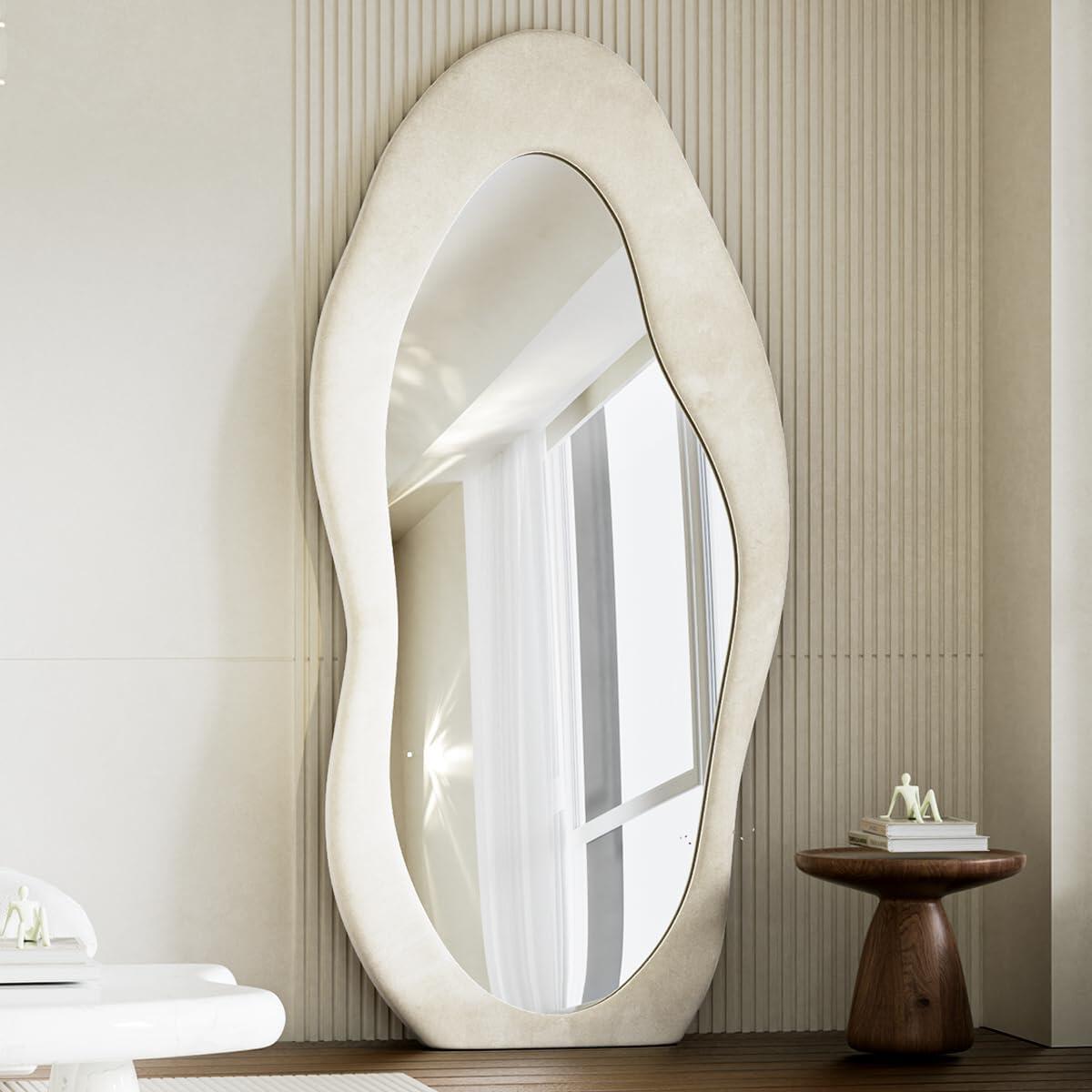 This luxurious and stylish irregular full-length mirror with a stand offers more than just a reflection of your attire—it doubles as a stunning decoration for your room. The blend of practicality and aesthetics elevates your decorative art style, making it a versatile addition to your space.