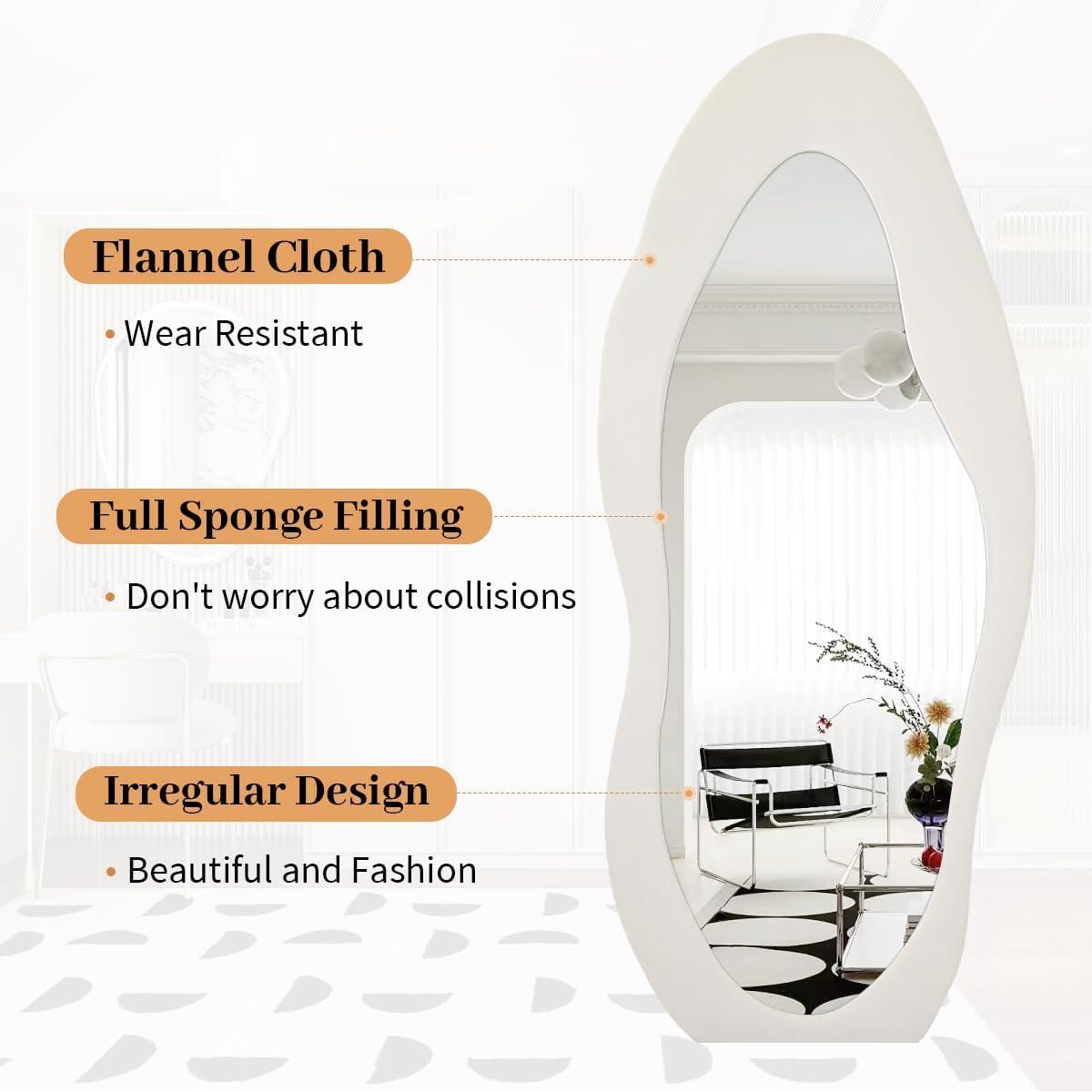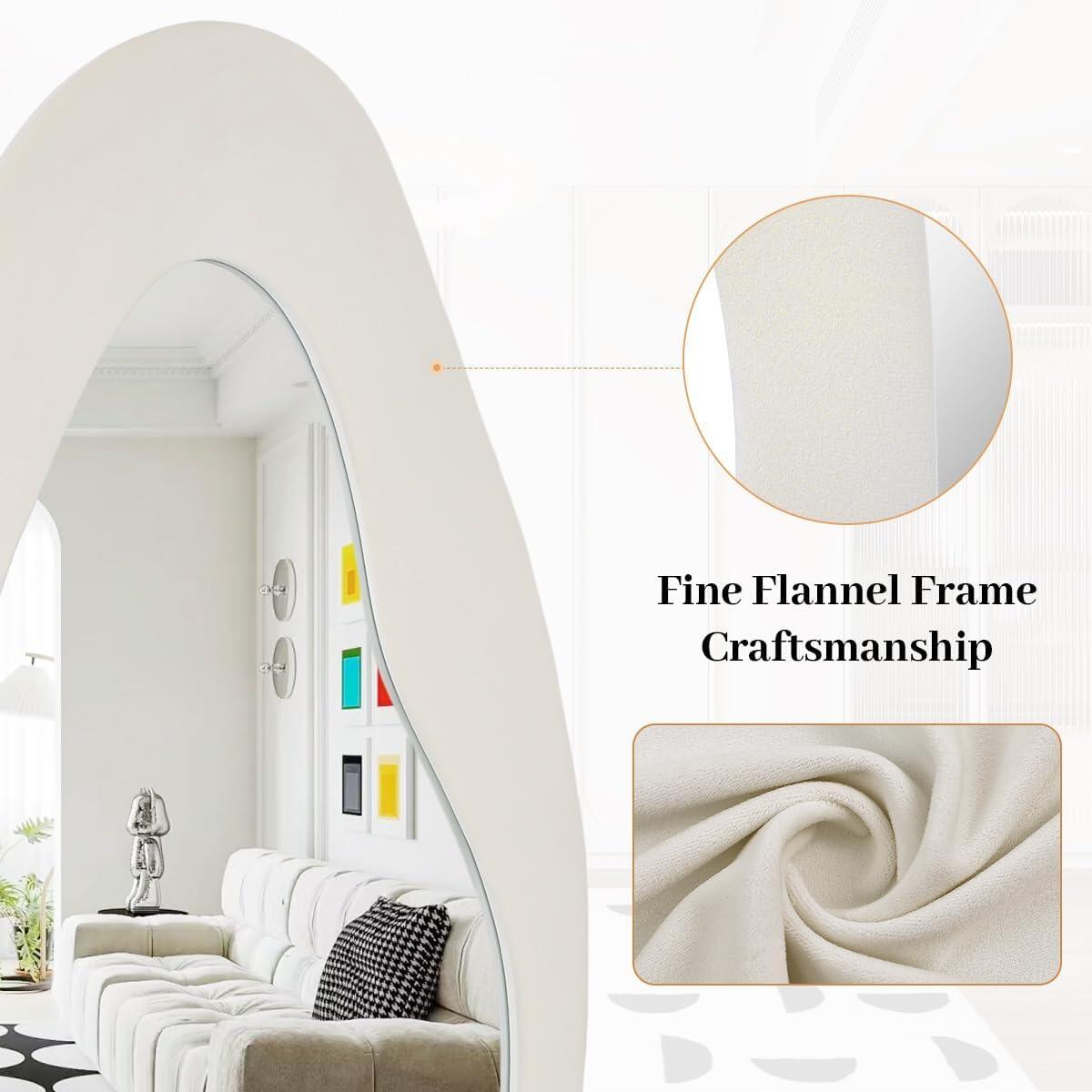 Oversized Flannel Cloud Floor Mirror with Stand, Full Body Freely Standing Mirror for Bedroom, Living Room, Hanging or Against The Wall, White