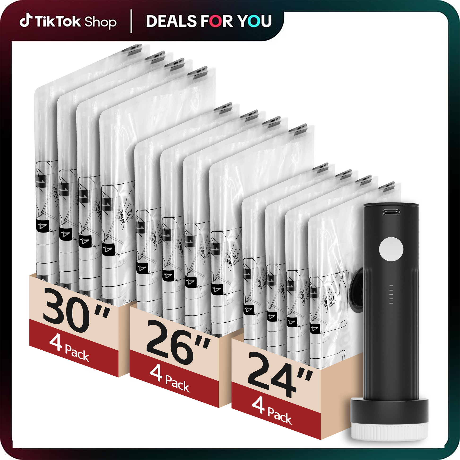 Travel Vacuum Bags for Luggage with Portable Electric Pump, 12 Combo (4L/4M/4S) Packing Seal Bags for Clothing Suitcase Backpack, Space Saver Compression Clothes Storage Bags