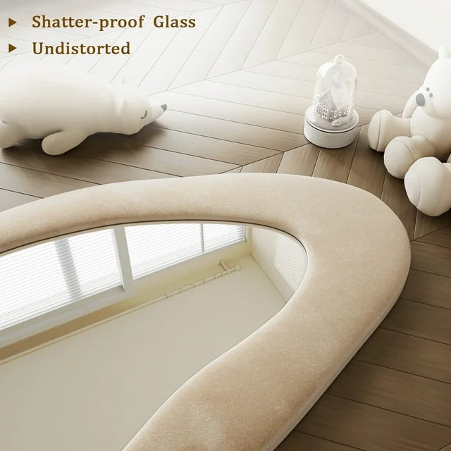 - Flannel Frame: Wrapped in plush, thick velvet fabric, the mirror’s flannel frame ensures a soft touch and minimizes collision risks, making it a stylish and safe choice for modern interiors.